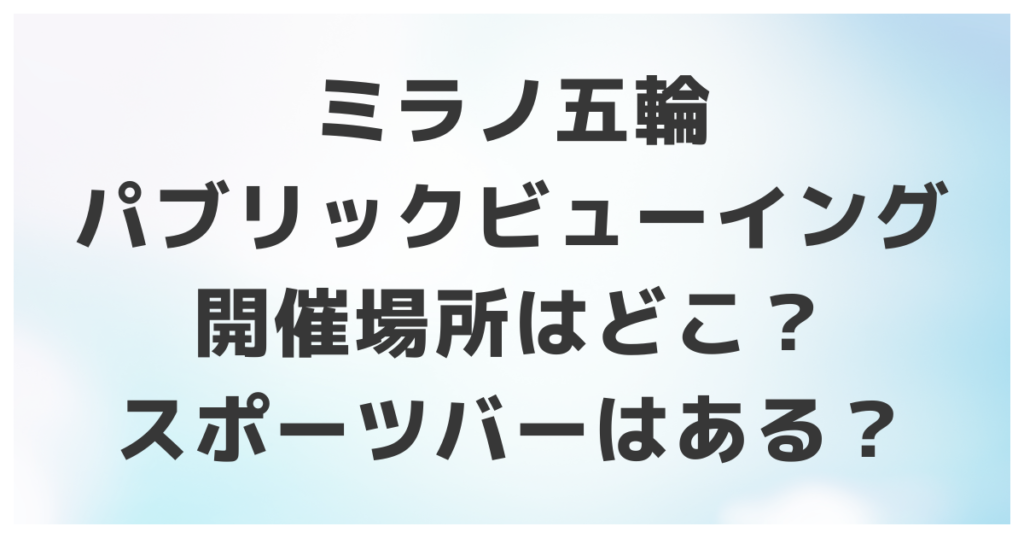 ミラノ五輪パブリックビューイングの開催場所は?スポーツバーはある?