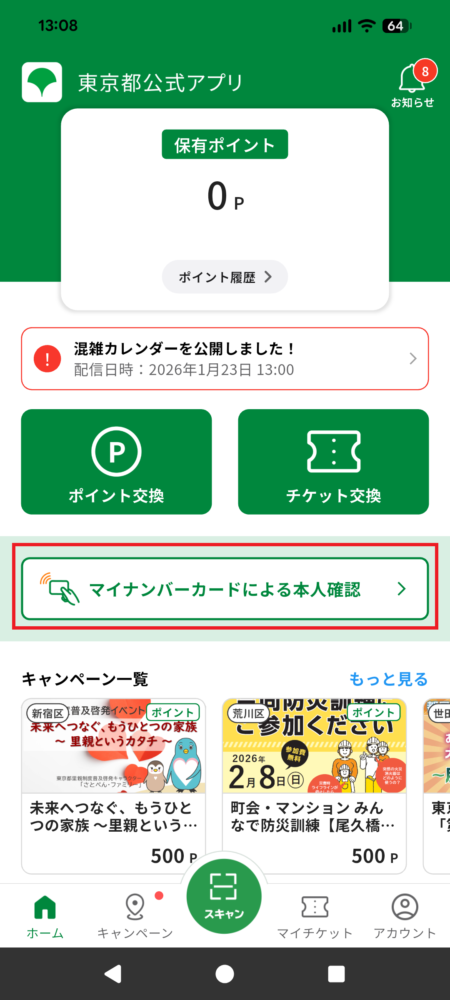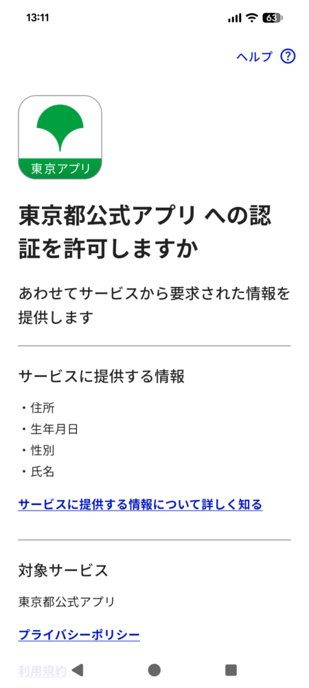 私の場合は、すでに東京都アプリでアカウント登録を済ませた状態です。